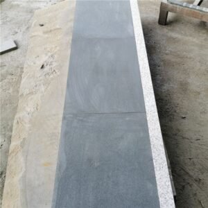 Chinese Basalt Bluestone outdoor treads,insert white granite,bluestone surface is grit,and the insert is flamed.